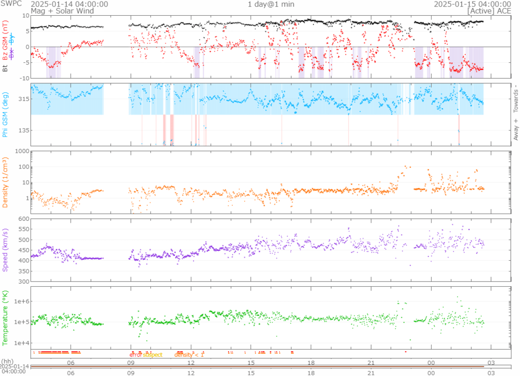 410km/s前後で推移していましたが徐々に上がり、現在470~510km/s前後で速度にバラツキがあります