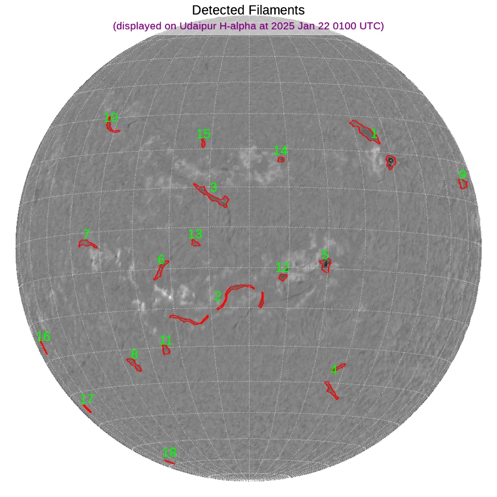 中央付近と、南北の中緯度帯にフィラメントがあります