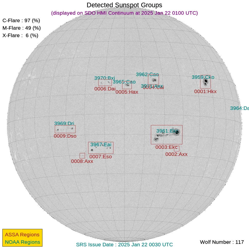 現時点で地球正面の黒点群は[3961, 3962, 3967, 3970, 3971]です。←黒点番号が振られていない活動領域でもフレアは発生しますので、あくまで目安として捉えてください。