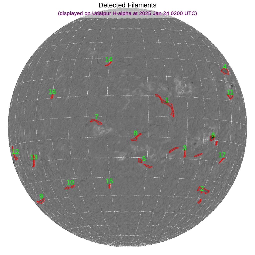 北半球中緯度帯~南半球中緯度帯にフィラメントが散在しています