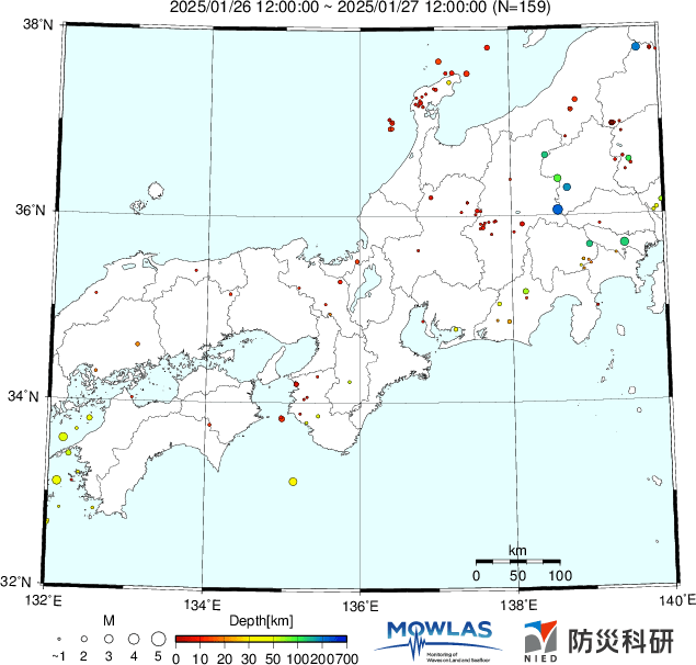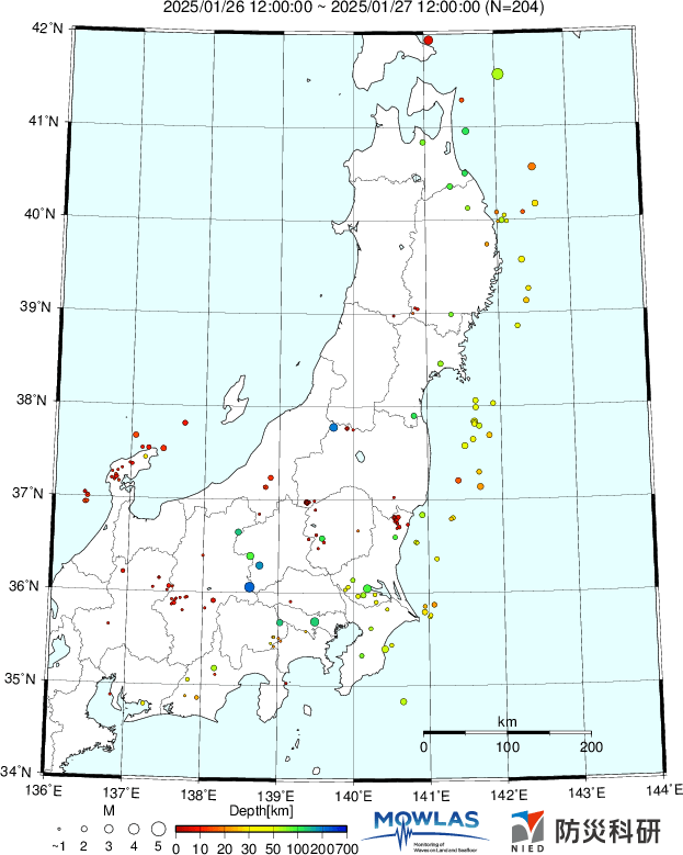 ●Hi-net日本地震分布と気象庁・・・hi-netの小笠原のデータは掲載日がずれて反映されるようです(翌々日に掲載)。掲載されないものもあるようなので気象庁の画像も付けます
