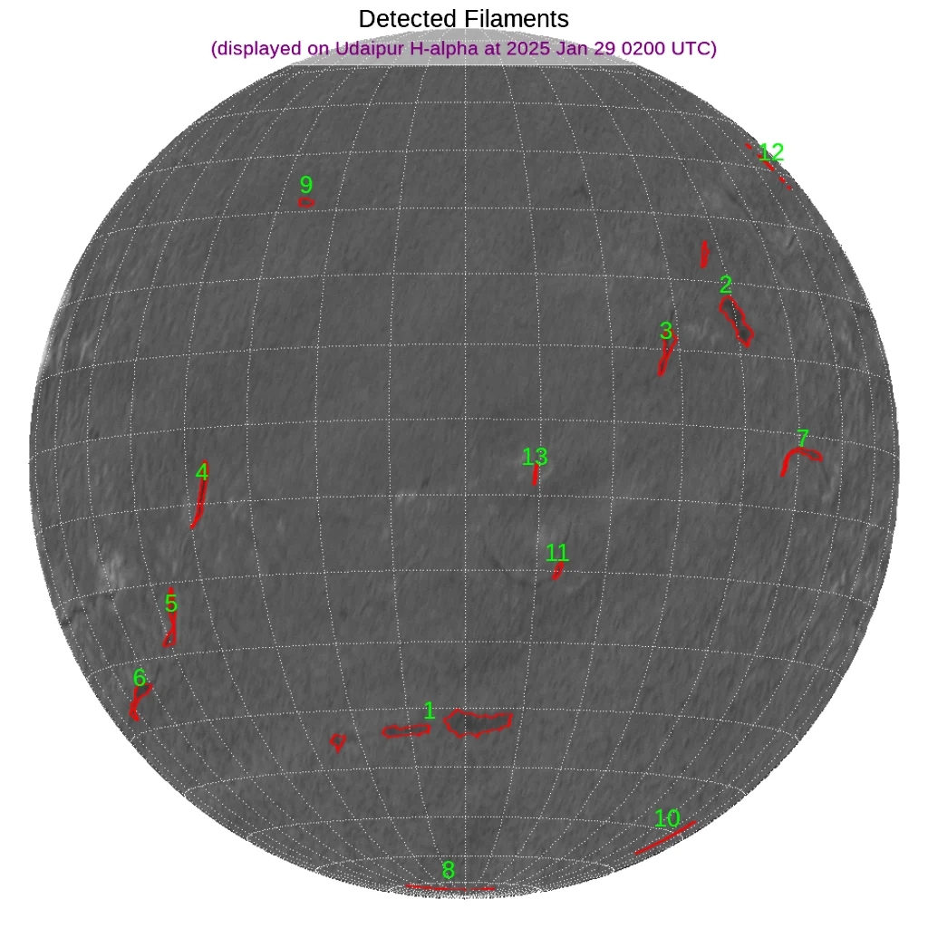 南半球(高緯度)中心付近、東端・西よりと、北半球西側にフィラメントが散在しています