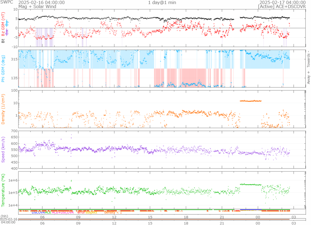 一時620km/s前後まで上がりましたが、現在500~550km/s前後で推移しています