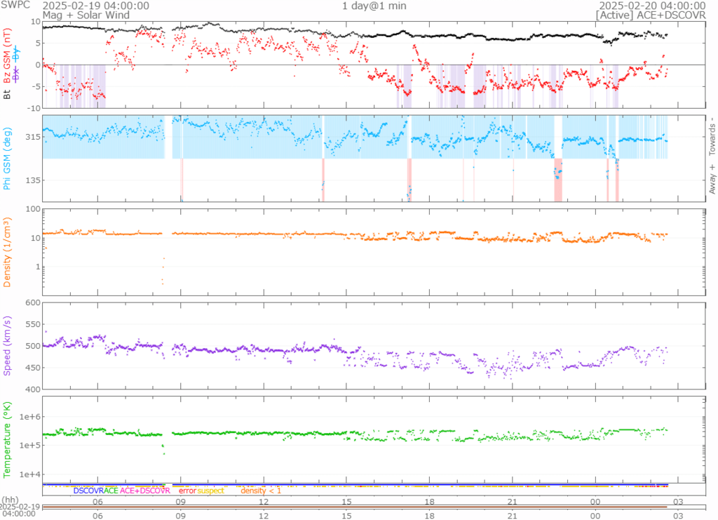 500km/s前後で推移していましたが徐々に下がり、一時440km/s前後で推移しました。現在は450~500km/s前後で速度にバラツキがあります