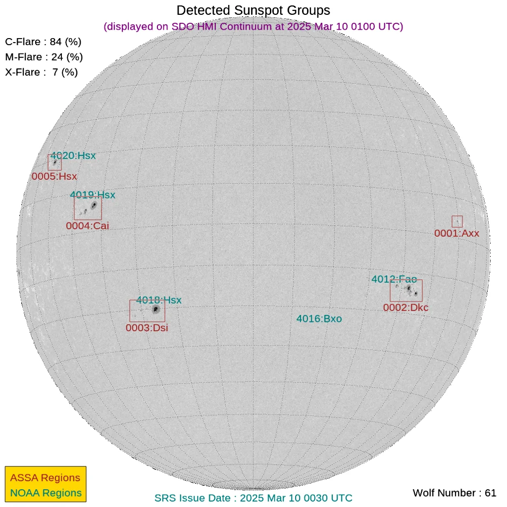 新しい黒点群が1個カウントされました。黒点数は73個です。