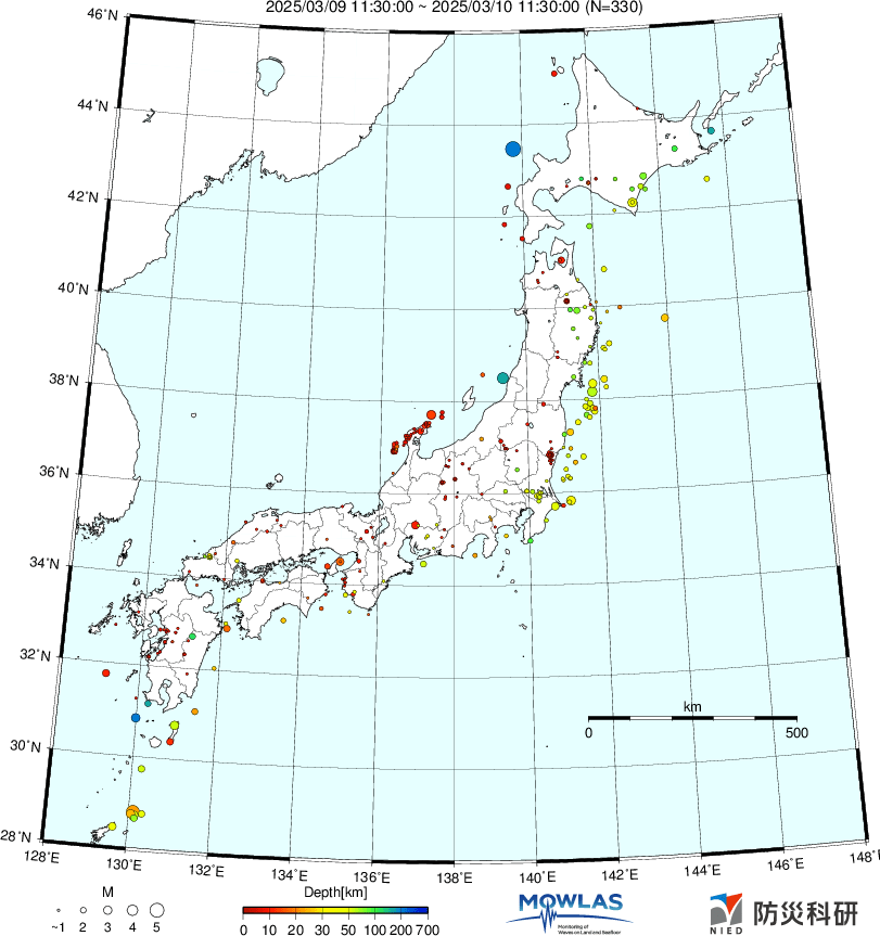 ●Hi-net日本地震分布と気象庁・・・hi-netの小笠原のデータは掲載日がずれて反映されるようです(翌々日に掲載)。掲載されないものもあるようなので気象庁の画像も付けます