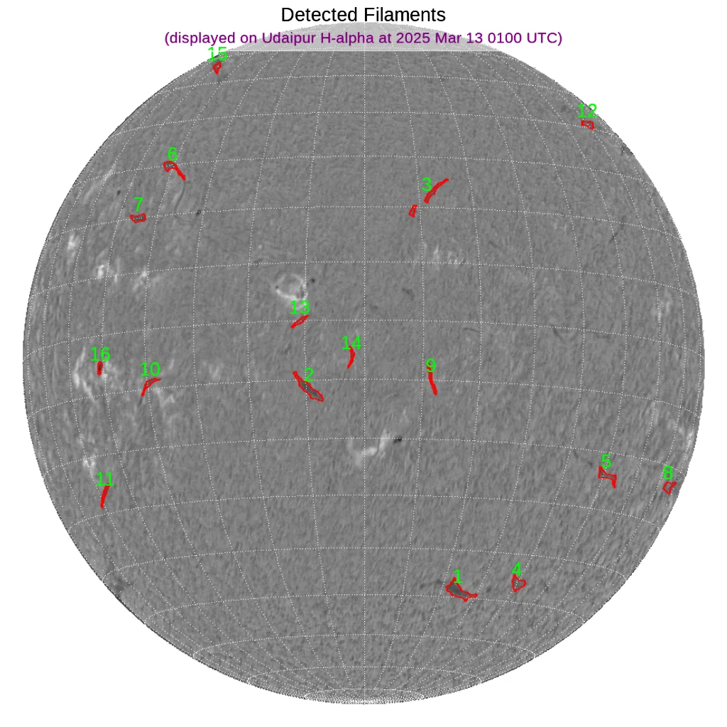 中央付近、南半球西側・東側、北半球西より・東側にフィラメントがあります