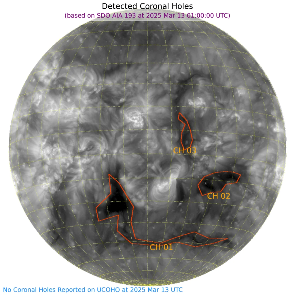 その他、赤道付近西より、南半球西側にもコロナホールがあります