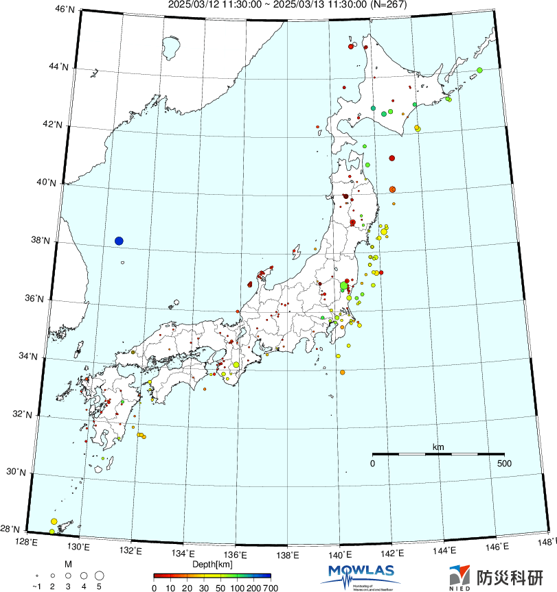 ●Hi-net日本地震分布と気象庁・・・hi-netの小笠原のデータは掲載日がずれて反映されるようです(翌々日に掲載)。掲載されないものもあるようなので気象庁の画像も付けます