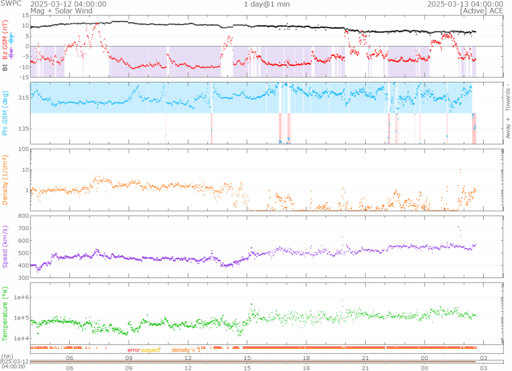 400km/s前後で推移していましたが、段階的に速度は上がり、現在550km/s前後で推移しています。