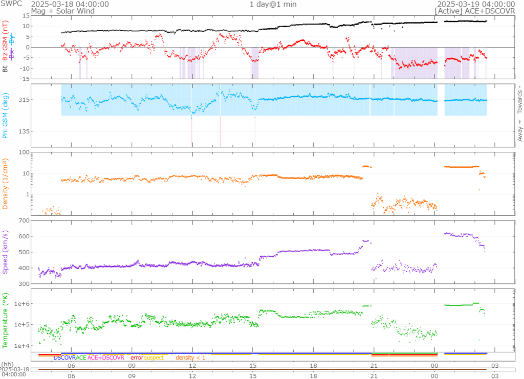 400km/s前後で推移していましたが段階的に上がり、一時600km/sを超えました。現在は500km/s前後で推移しています
