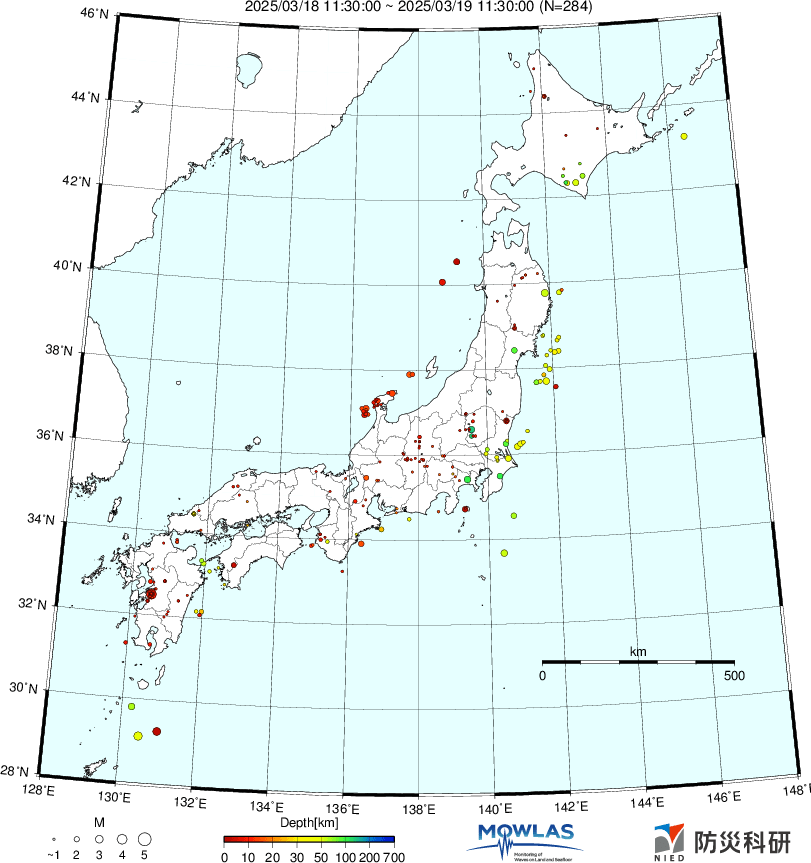 ●Hi-net日本地震分布と気象庁・・・hi-netの小笠原のデータは掲載日がずれて反映されるようです(翌々日に掲載)。掲載されないものもあるようなので気象庁の画像も付けます