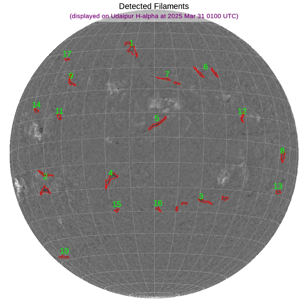 北半球中緯度帯~南半球中緯度帯にフィラメントが散在しています