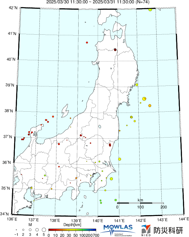 ●Hi-net日本地震分布と気象庁・・・hi-netの小笠原のデータは掲載日がずれて反映されるようです(翌々日に掲載)。掲載されないものもあるようなので気象庁の画像も付けます