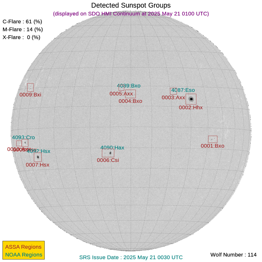 新しい黒点群が1個カウントされました。黒点数は67個です。