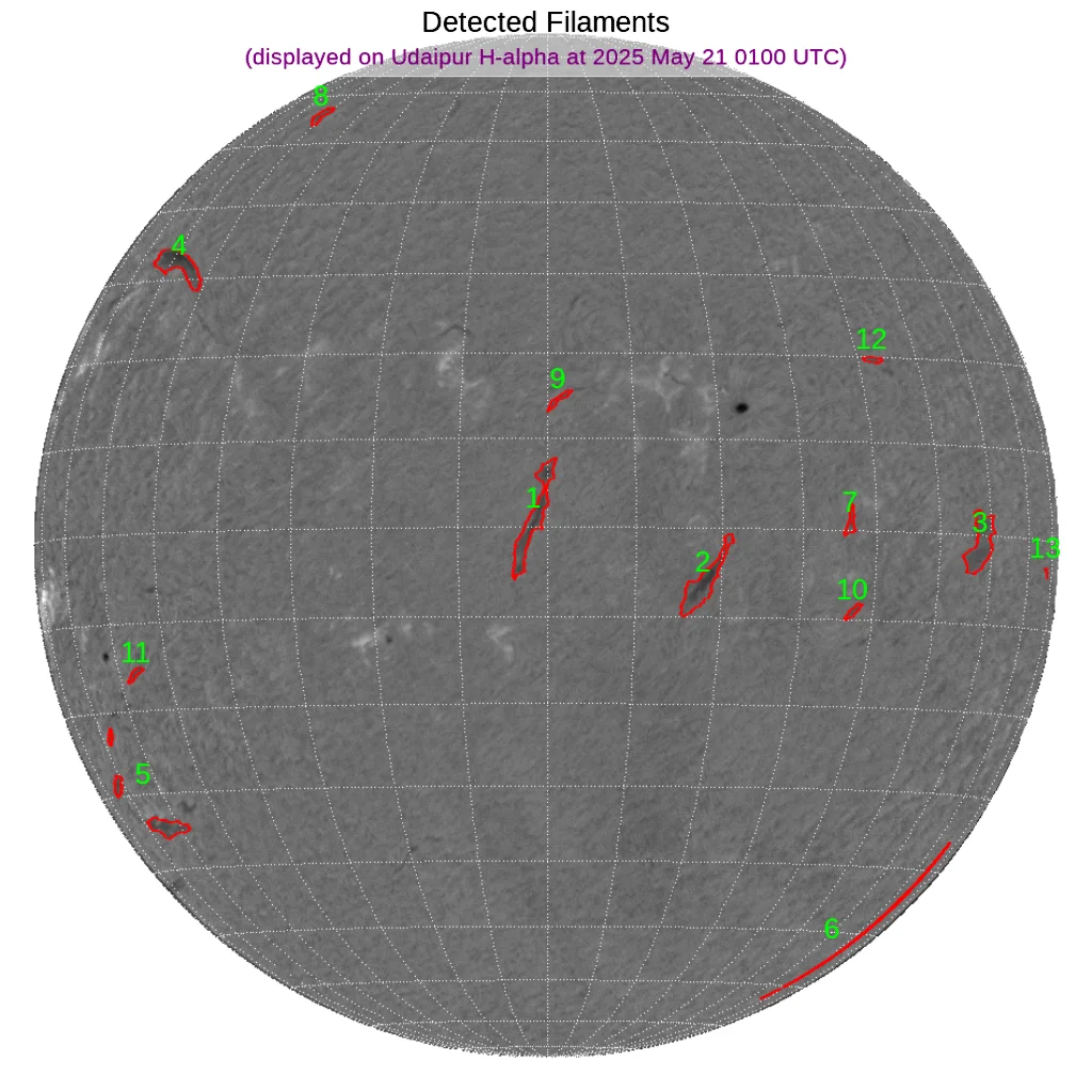 赤道付近西側付近と、南半球東端、北半球東端・西側にフィラメントが散在しています