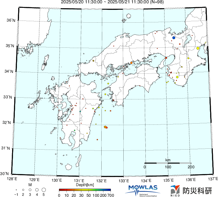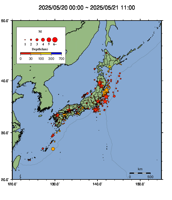 ●Hi-net日本地震分布と気象庁・・・hi-netの小笠原のデータは掲載日がずれて反映されるようです(翌々日に掲載)。掲載されないものもあるようなので気象庁の画像も付けます