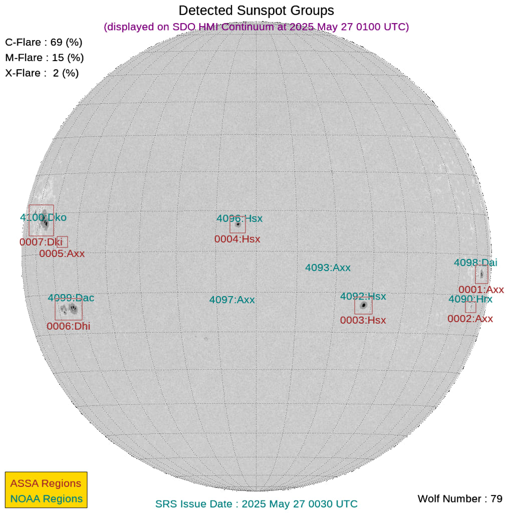 現時点で地球正面の黒点群は[4093, 4096, 4097]です。←黒点番号が振られていない活動領域でもフレアは発生しますので、あくまで目安として捉えてください。