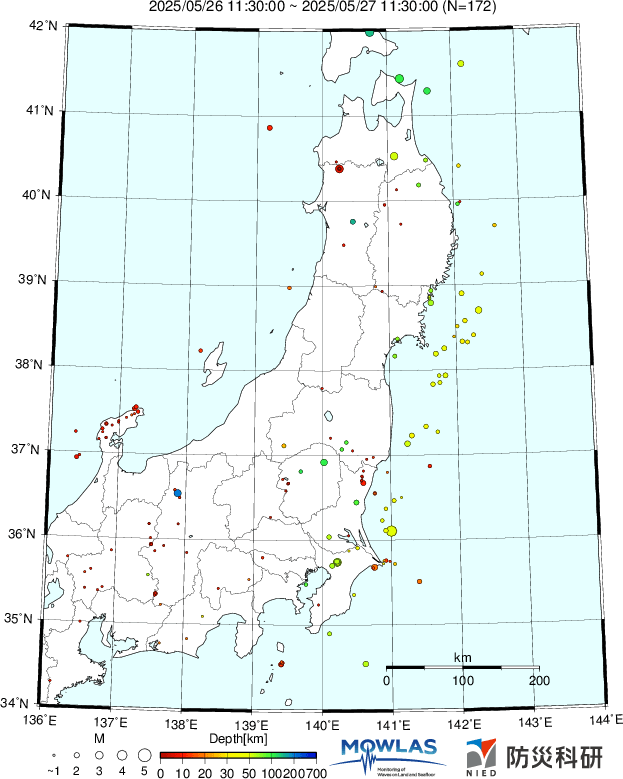 ●Hi-net日本地震分布と気象庁・・・hi-netの小笠原のデータは掲載日がずれて反映されるようです(翌々日に掲載)。掲載されないものもあるようなので気象庁の画像も付けます