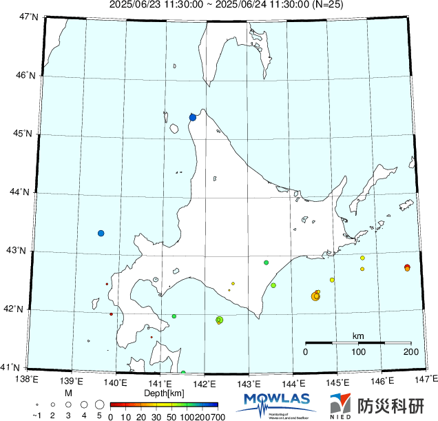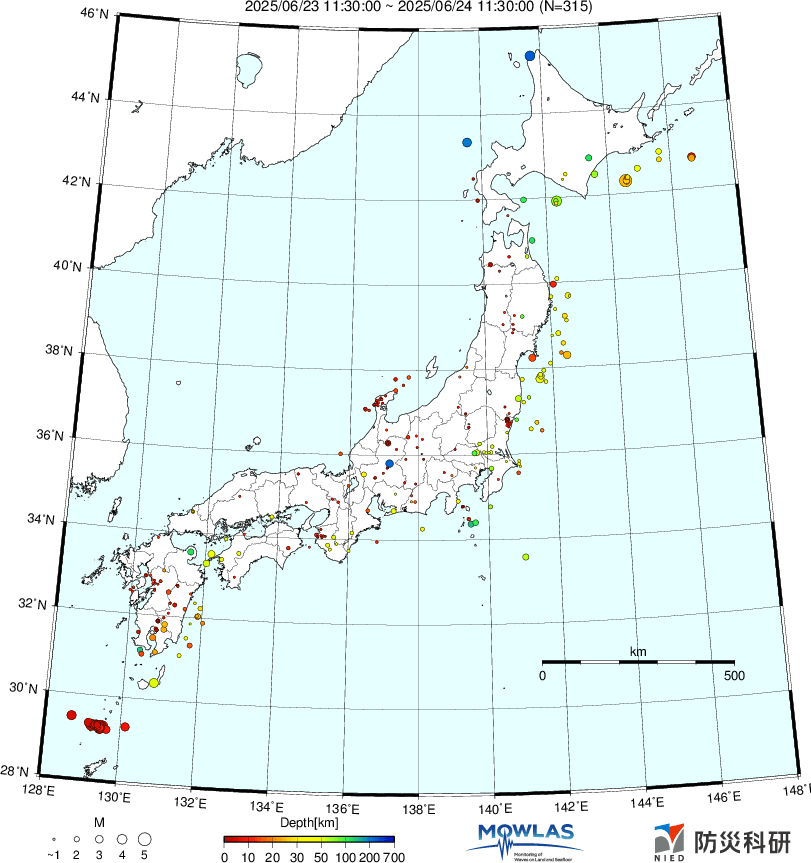 ●Hi-net日本地震分布と気象庁・・・hi-netの小笠原のデータは掲載日がずれて反映されるようです(翌々日に掲載)。掲載されないものもあるようなので気象庁の画像も付けます