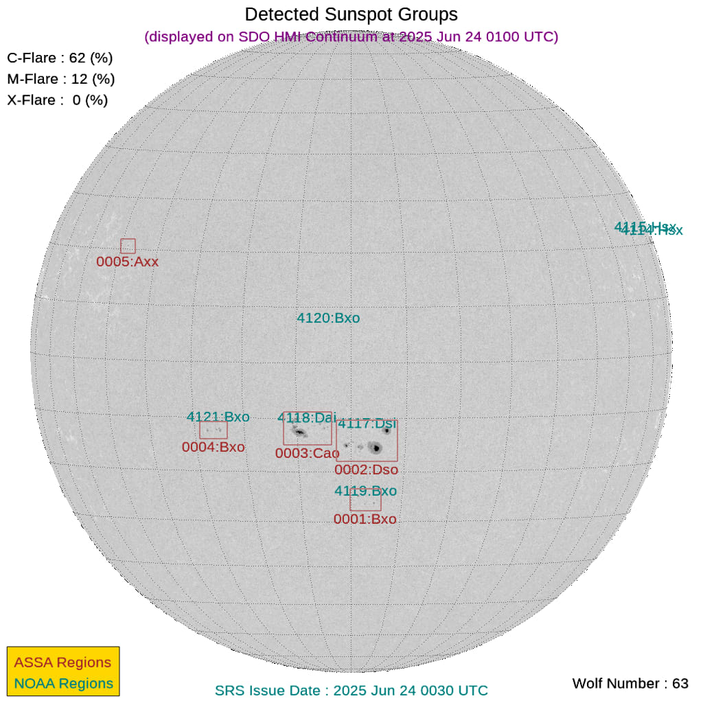 現時点で地球正面の黒点群は[4117, 4118, 4119, 4120]です。←黒点番号が振られていない活動領域でもフレアは発生しますので、あくまで目安として捉えてください。