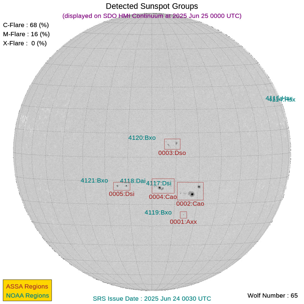 現時点で地球正面の黒点群は[4117, 4118, 4119, 4120, 4121]です。←黒点番号が振られていない活動領域でもフレアは発生しますので、あくまで目安として捉えてください。