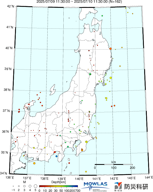 ●Hi-net日本地震分布と気象庁・・・hi-netの小笠原のデータは掲載日がずれて反映されるようです(翌々日に掲載)。掲載されないものもあるようなので気象庁の画像も付けます