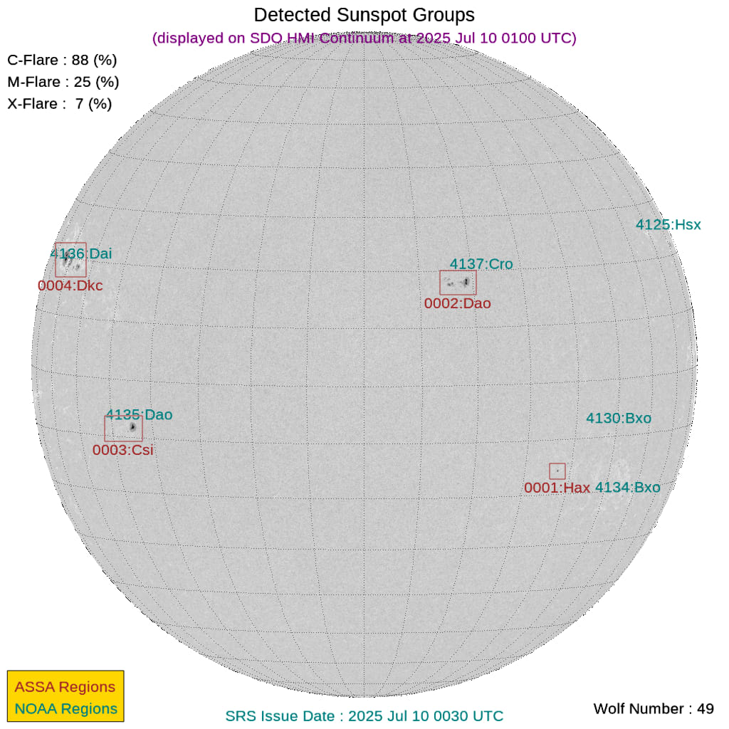 現時点で地球正面の黒点群は[4137]です。←黒点番号が振られていない活動領域でもフレアは発生しますので、あくまで目安として捉えてください。