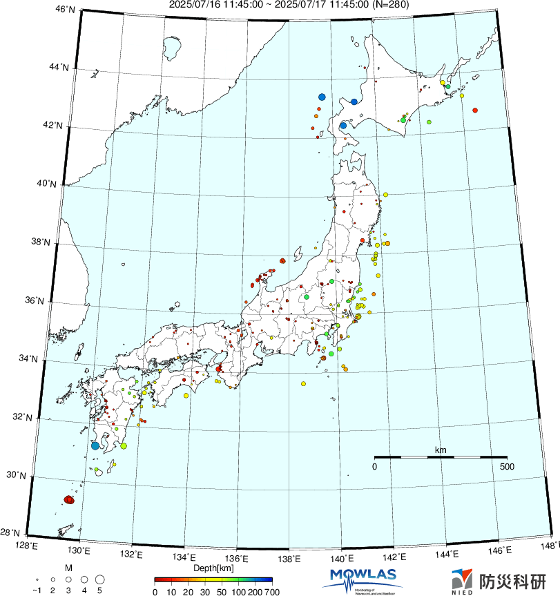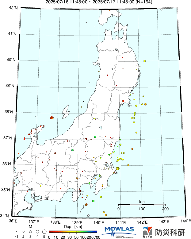 ●Hi-net日本地震分布と気象庁・・・hi-netの小笠原のデータは掲載日がずれて反映されるようです(翌々日に掲載)。掲載されないものもあるようなので気象庁の画像も付けます