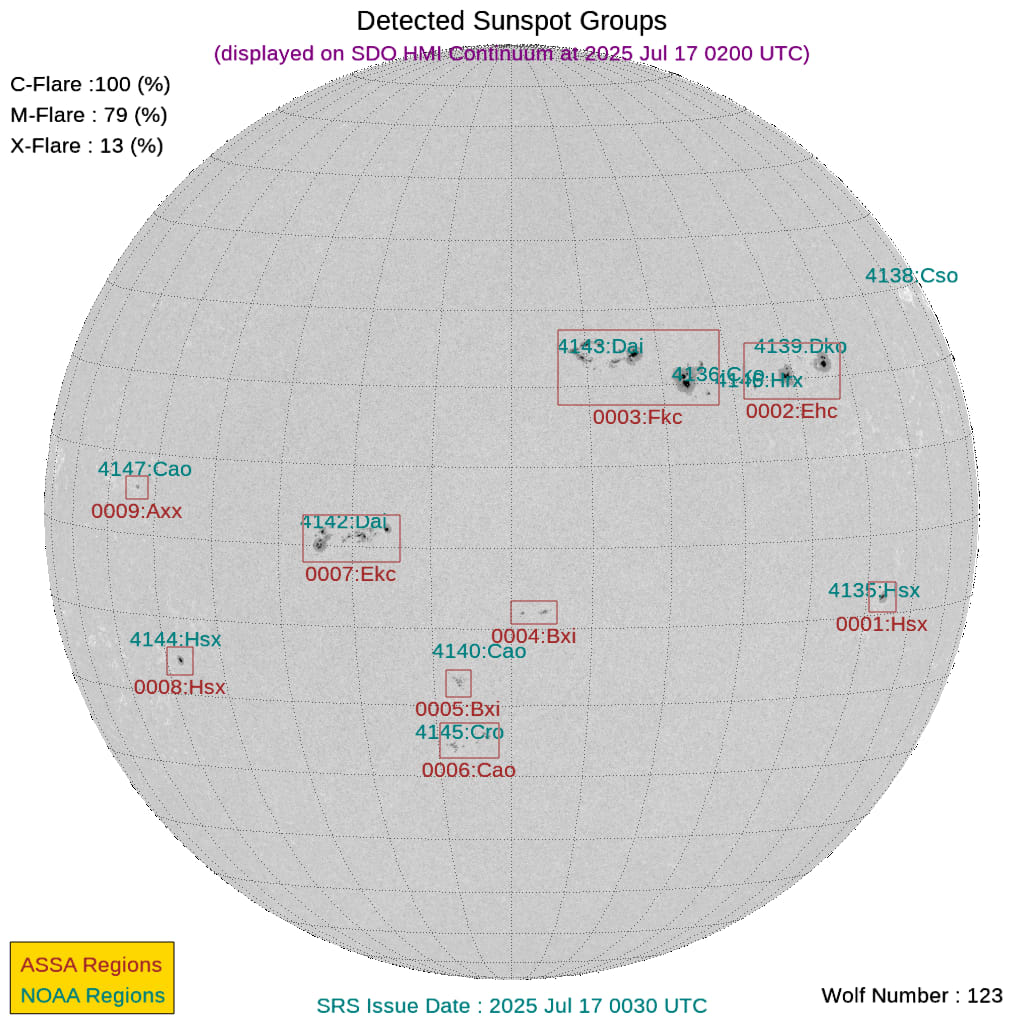 現時点で地球正面の黒点群は[4140, 4142, 4143, 4145]です。←黒点番号が振られていない活動領域でもフレアは発生しますので、あくまで目安として捉えてください。
