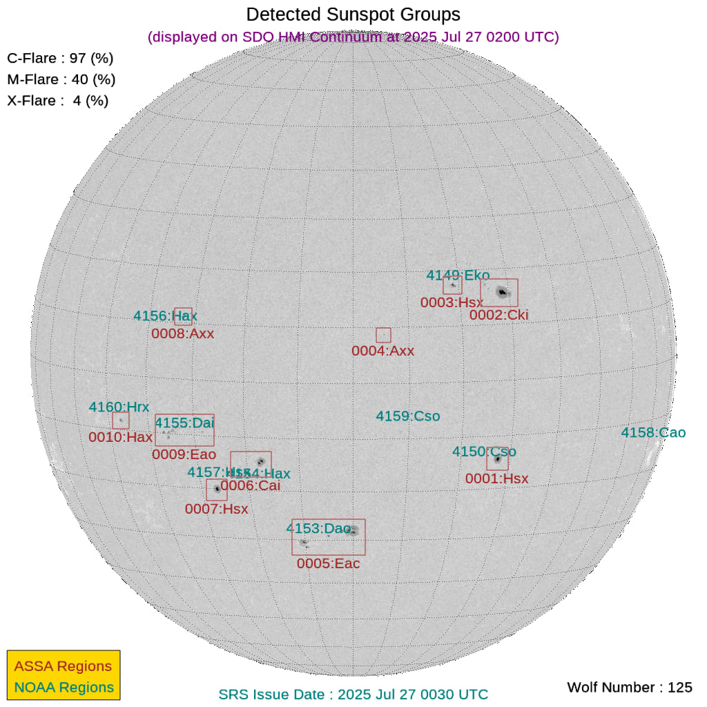 現時点で地球正面の黒点群は[4149, 4153, 4154, 4159]です。←黒点番号が振られていない活動領域でもフレアは発生しますので、あくまで目安として捉えてください。