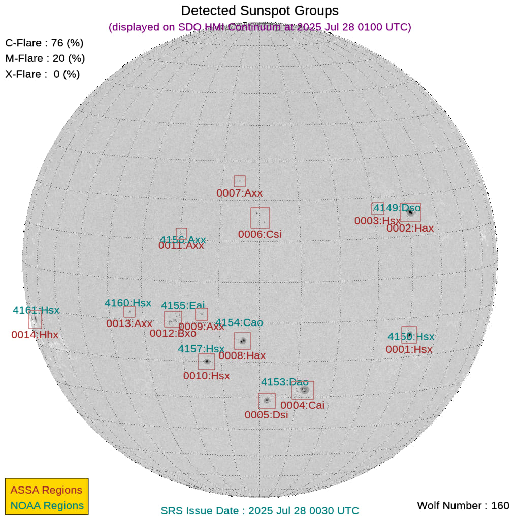 太陽フレアと黒点数(2025年07月28日更新)※CME到着予測あり