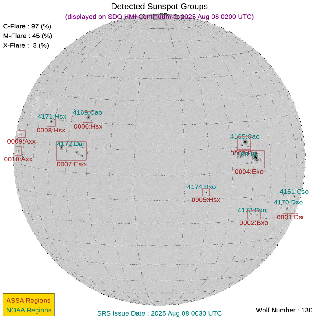 現時点で地球正面の黒点群は[4174]です。←黒点番号が振られていない活動領域でもフレアは発生しますので、あくまで目安として捉えてください。