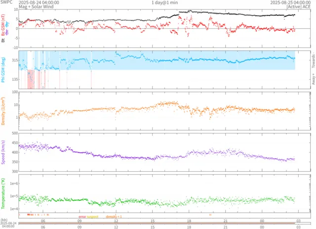 430km/s前後で推移していましたが徐々に下がり、現在370km/s前後で推移しています