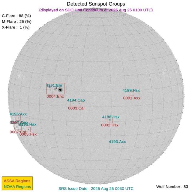 現時点で地球正面の黒点群は[4188, 4189, 4193, 4194]です。←黒点番号が振られていない活動領域でもフレアは発生しますので、あくまで目安として捉えてください。
