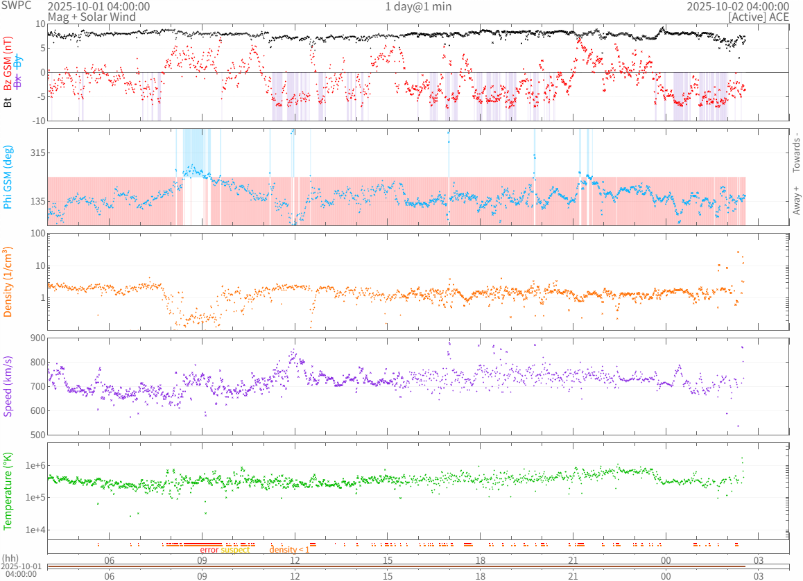 一時830km/s前後まで上がりましたが、現在は730km/s前後で推移しています