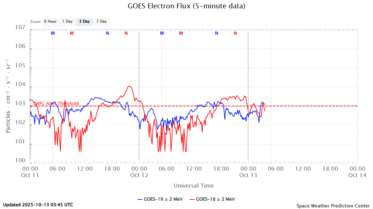 太陽フレアと黒点数(2025年10月13日更新)※CME到着予測あり