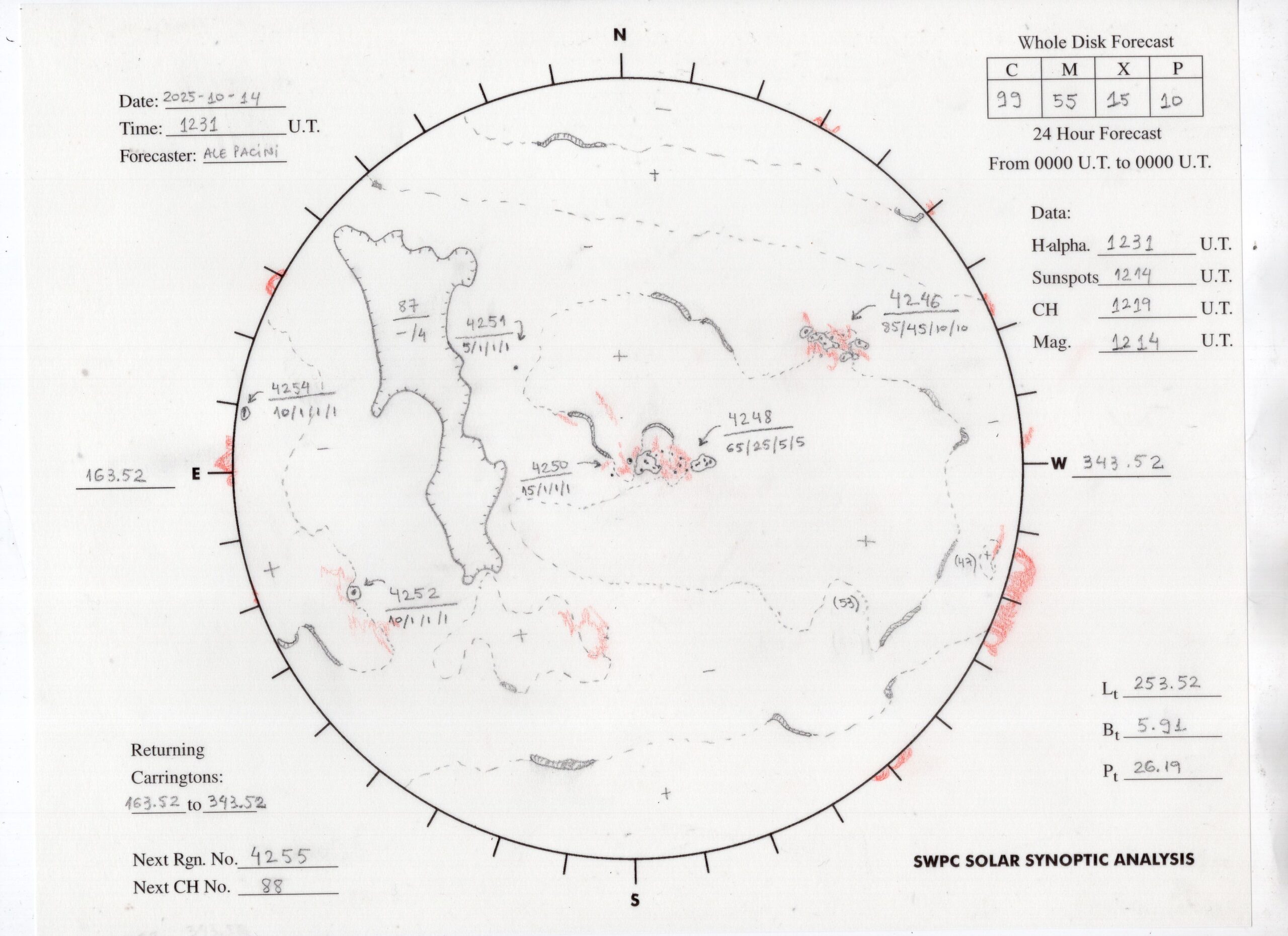 現時点で地球正面の黒点群は[4248, 4250, 4251]です。←黒点番号が振られていない活動領域でもフレアは発生しますので、あくまで目安として捉えてください。