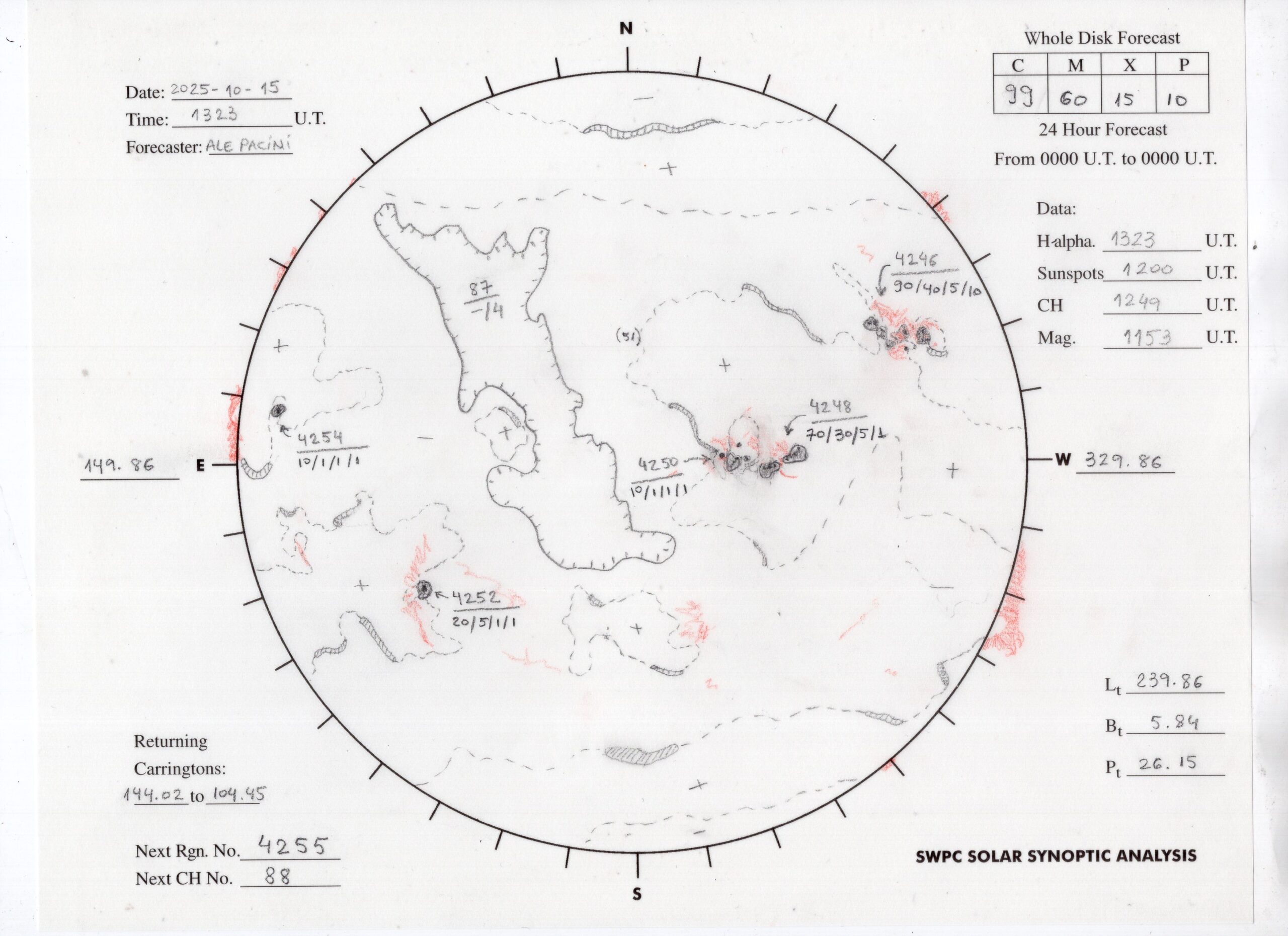 太陽フレアと黒点数(2025年10月16日更新)※中規模頻発&CME到着予測あり