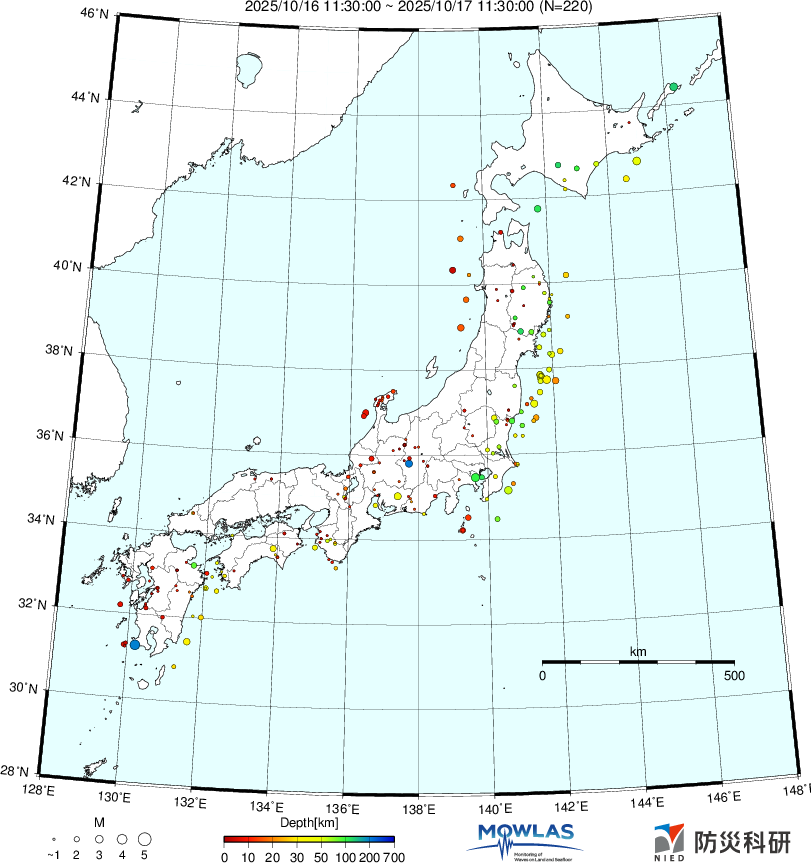 日本全域の最新地震分布