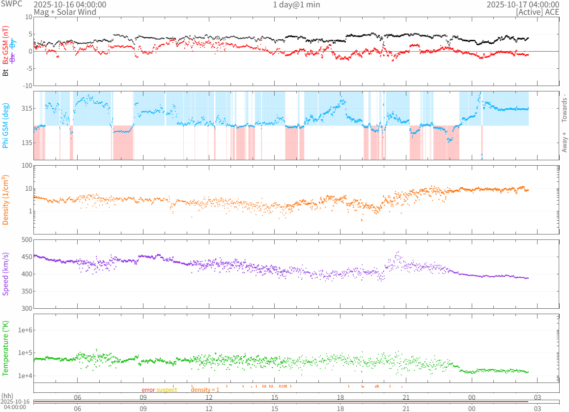 リアルタイム太陽風(NOAA)