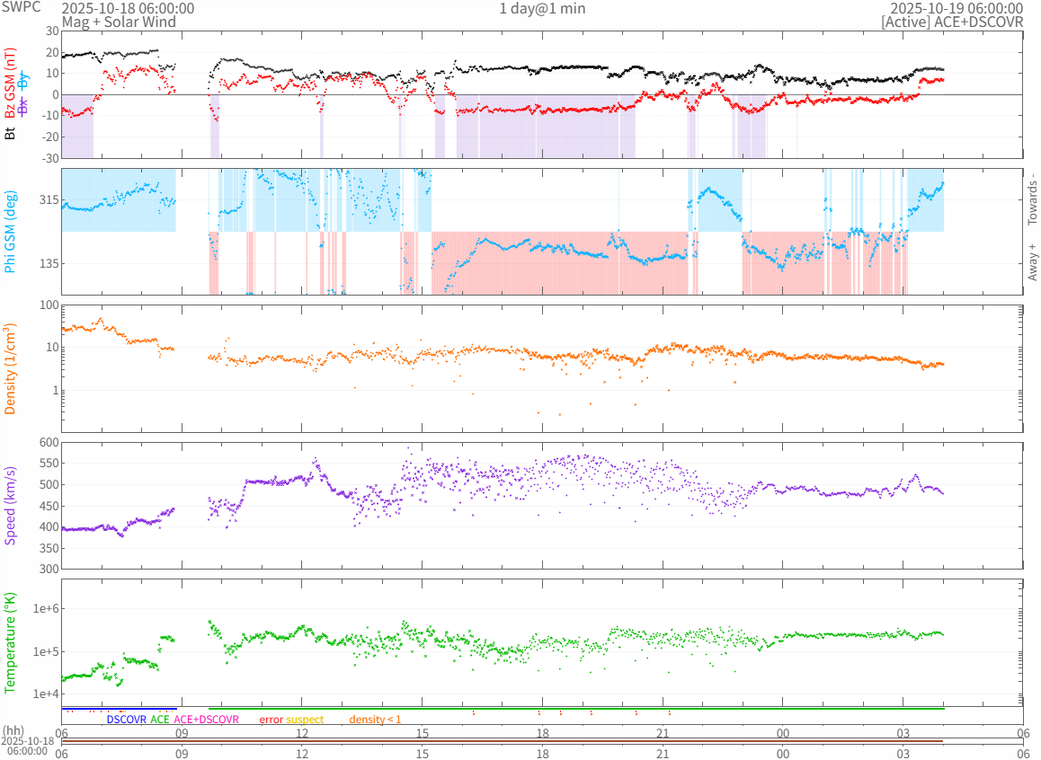 400km/s前後で推移していましたが19時頃から上がり、一時550km/sまで上がりました。現在は460km/s前後で推移しています。