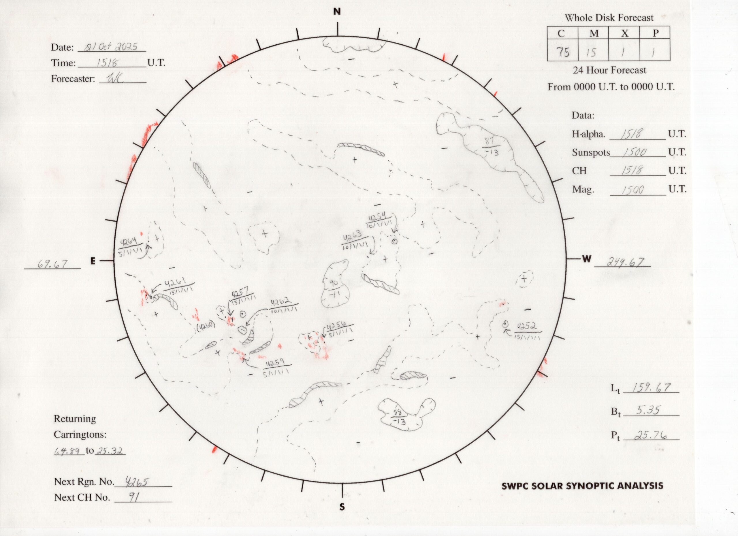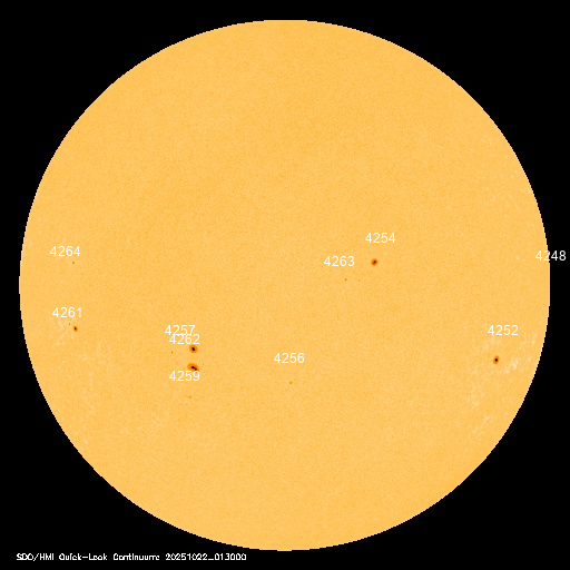 太陽フレアと黒点数(2025年10月22日更新)※中規模太陽フレア(proton上昇中)