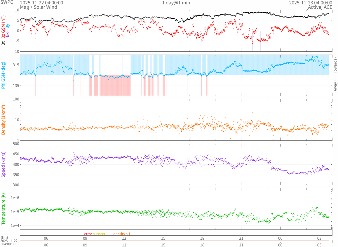 420km/s前後から一時360km/s前後まで下がりましたが、現在400km/s前後で推移しています