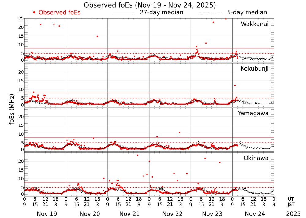 本日のまとめ:C級中心で推移。黒点数は079、地磁気はSum 15 前後。詳報は各セクションへ。