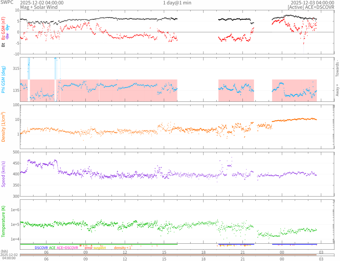 リアルタイム太陽風(NOAA)