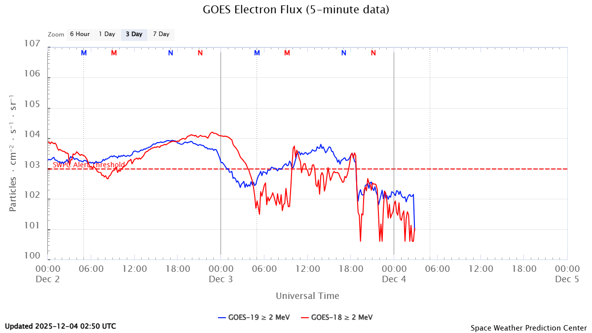 ※電子の増減傾向を確認。上昇時は衛星通信などへ影響することがあります。