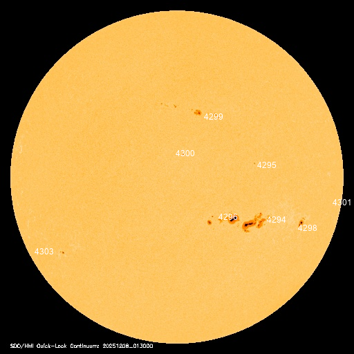 太陽フレアと黒点数(2025年12月08日更新)※中規模太陽フレア&CME到着予測あり
