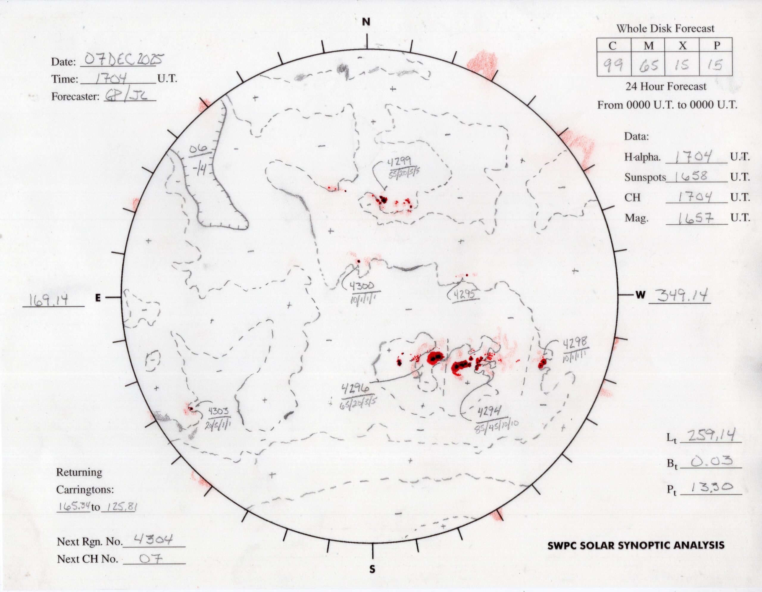 本日のまとめ:中規模(M級)フレアが4294(南半球西側)、4299(北半球西寄り)で継続。黒点数は133、地磁気はSum 11 前後。フレアに伴うCME到着予測がいくつか出ています。詳報は各セクションへ。