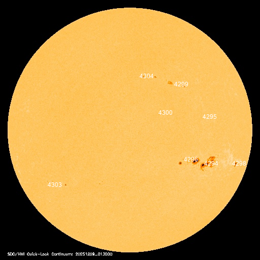 太陽フレアと黒点数(2025年12月09日更新)※大規模太陽フレア&CME到着予測あり